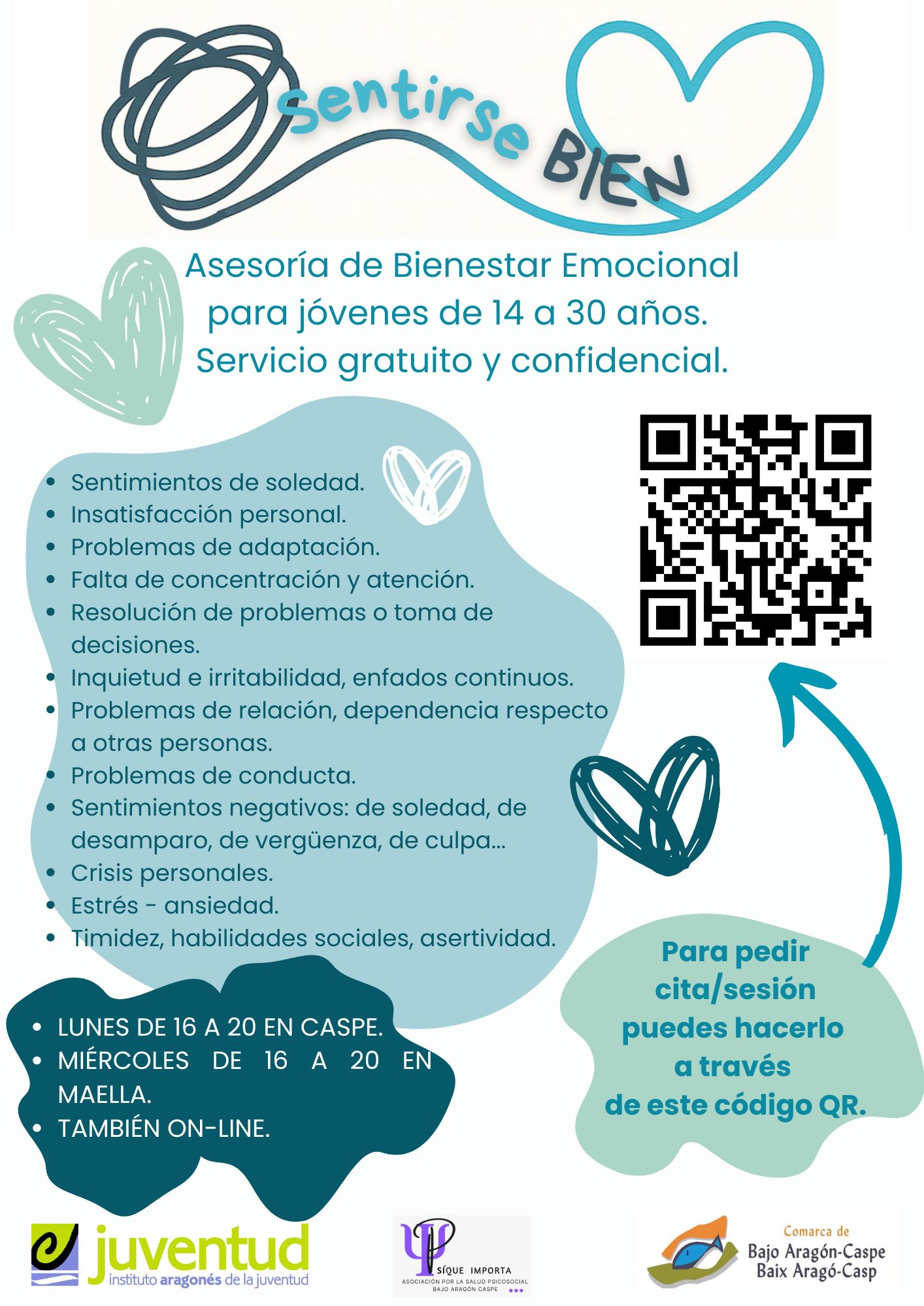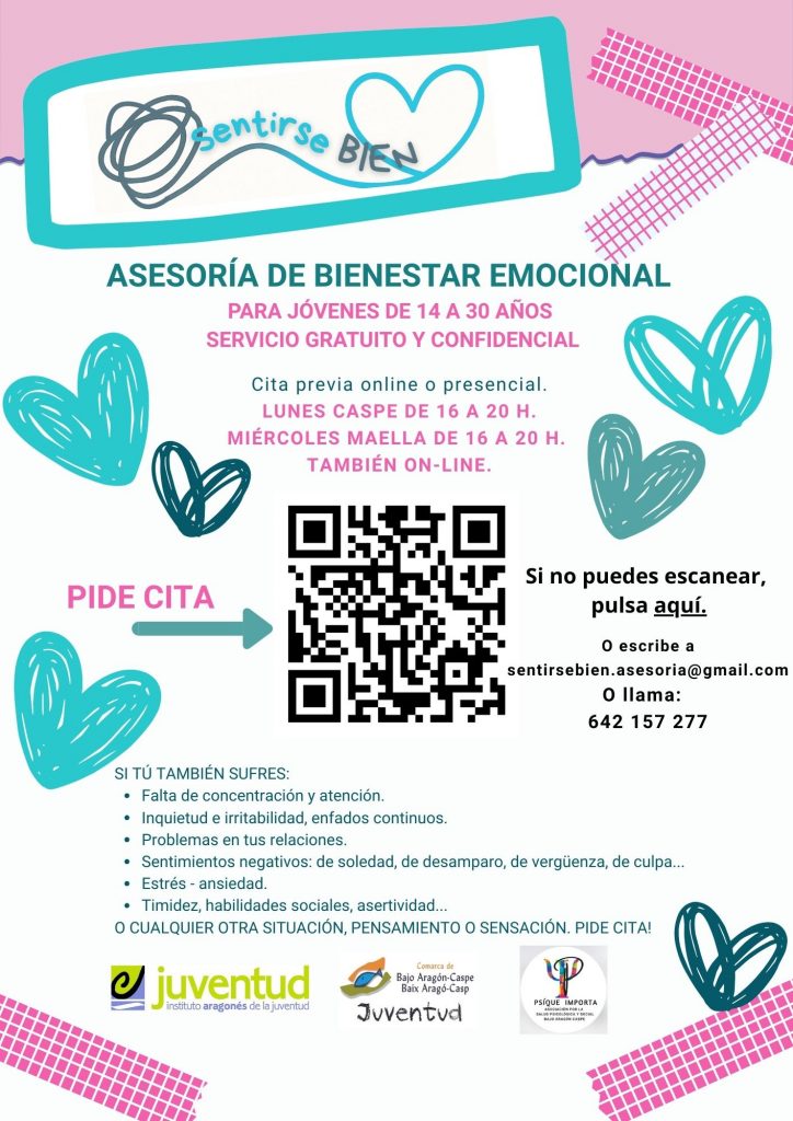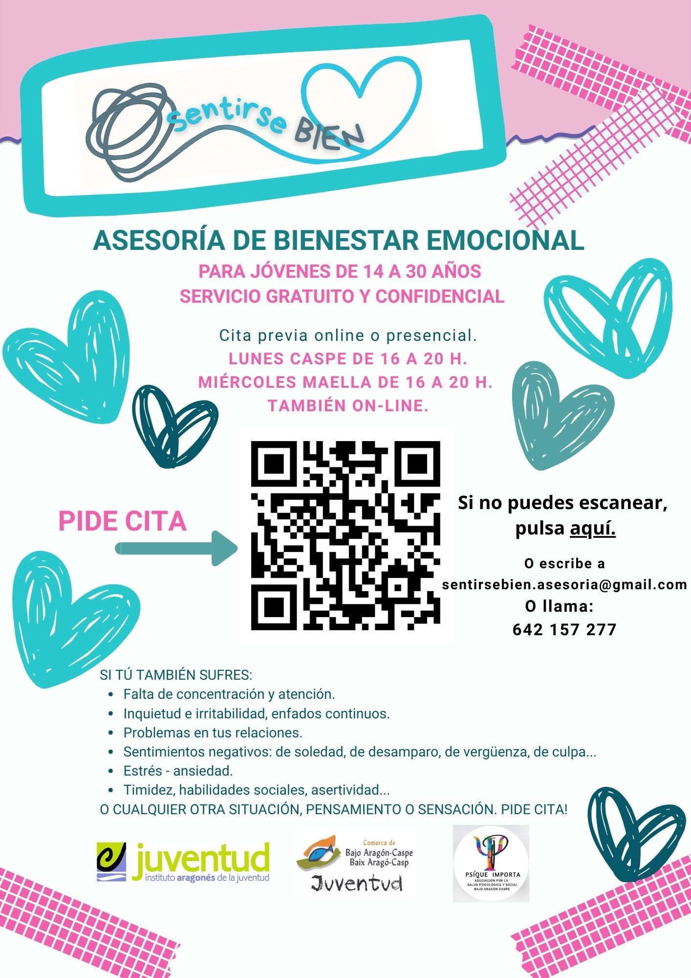 La Asesoría de Bienestar Emocional es un servicio gratuito, confidencial y cercano para jóvenes de 14 a 30 años que necesiten hablar, compartir inquietudes o recibir orientación profesional.