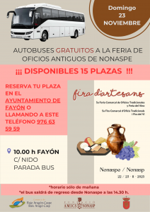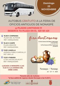 12 Nov AUTOBUSES GRATUITOS A LA FERIA DE OFICIOS ANTIGUOS DE NONASPE EL DOMINGO 23 DE NOVIEMBRE POR LA MAÑANA