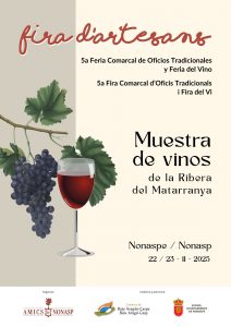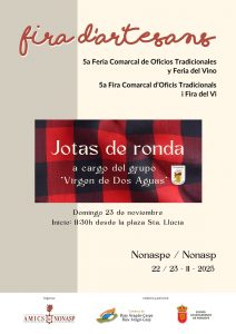 Un año más, y esta es ya la 5ª Edición, se va a desarrollar en la localidad de Nonaspe la Feria Comarcal de Oficios Antiguos o Tradicionales en Nonaspe. Será durante los días 22 y 23 del presente mes de noviembre (sábado y domingo).
