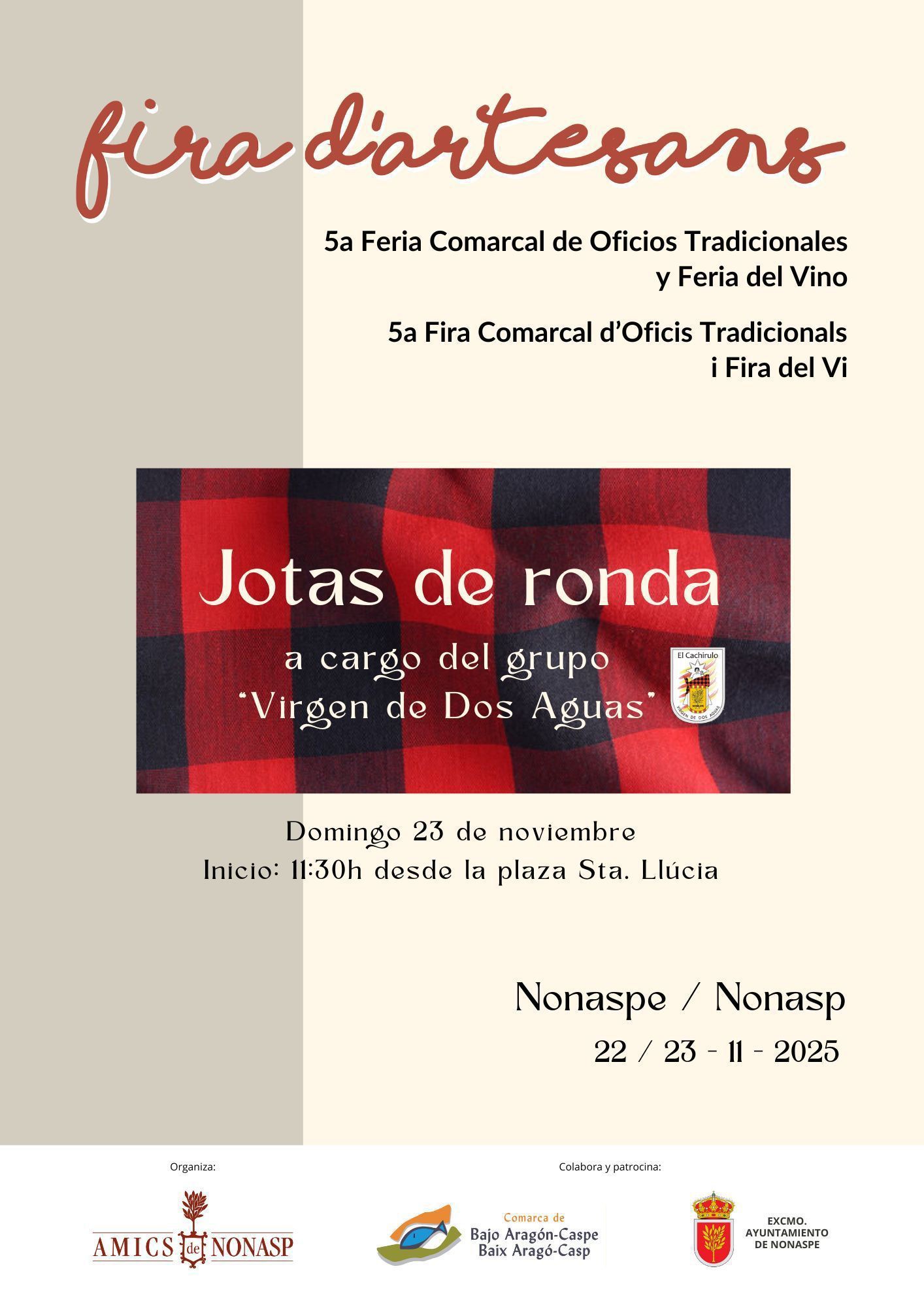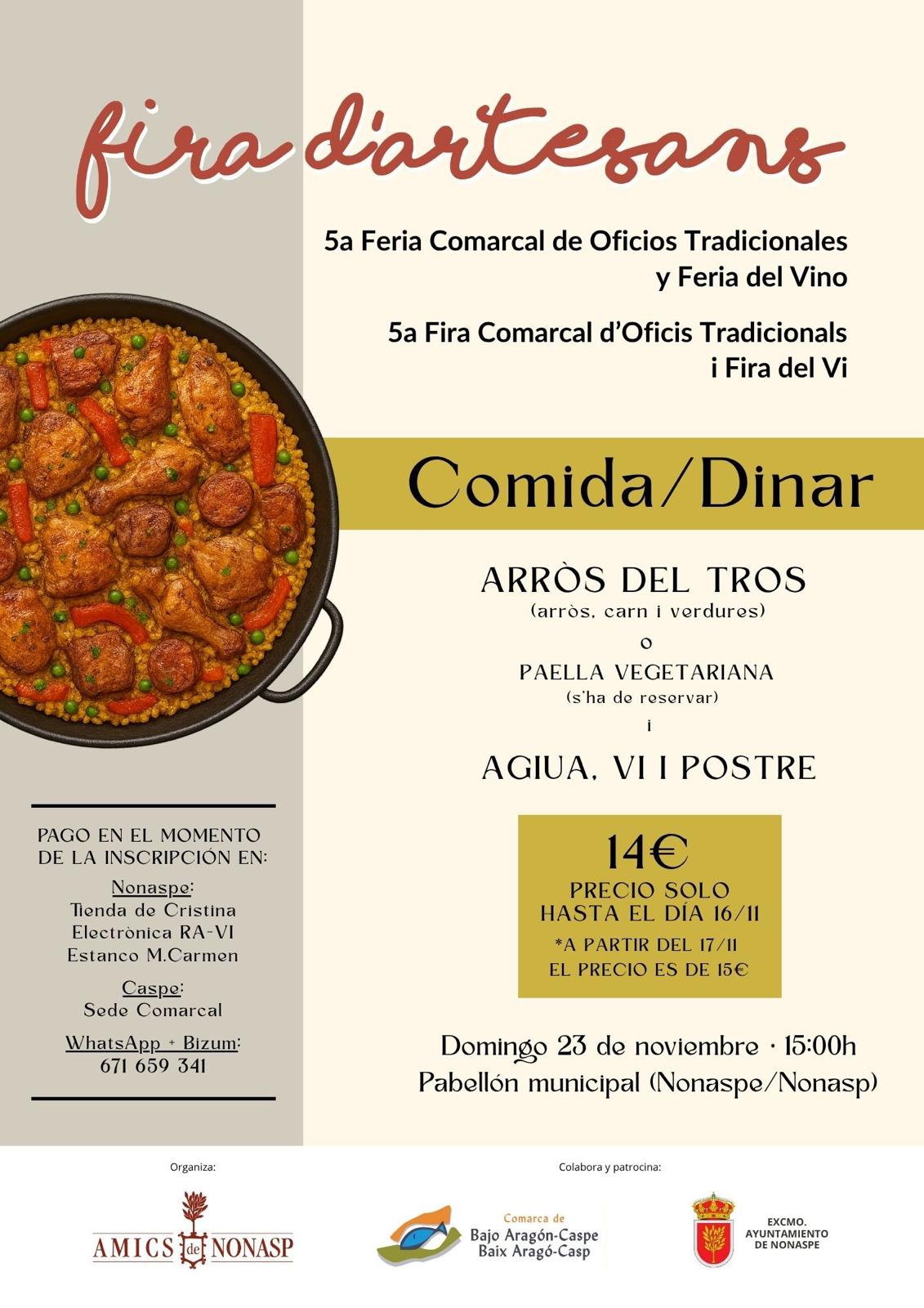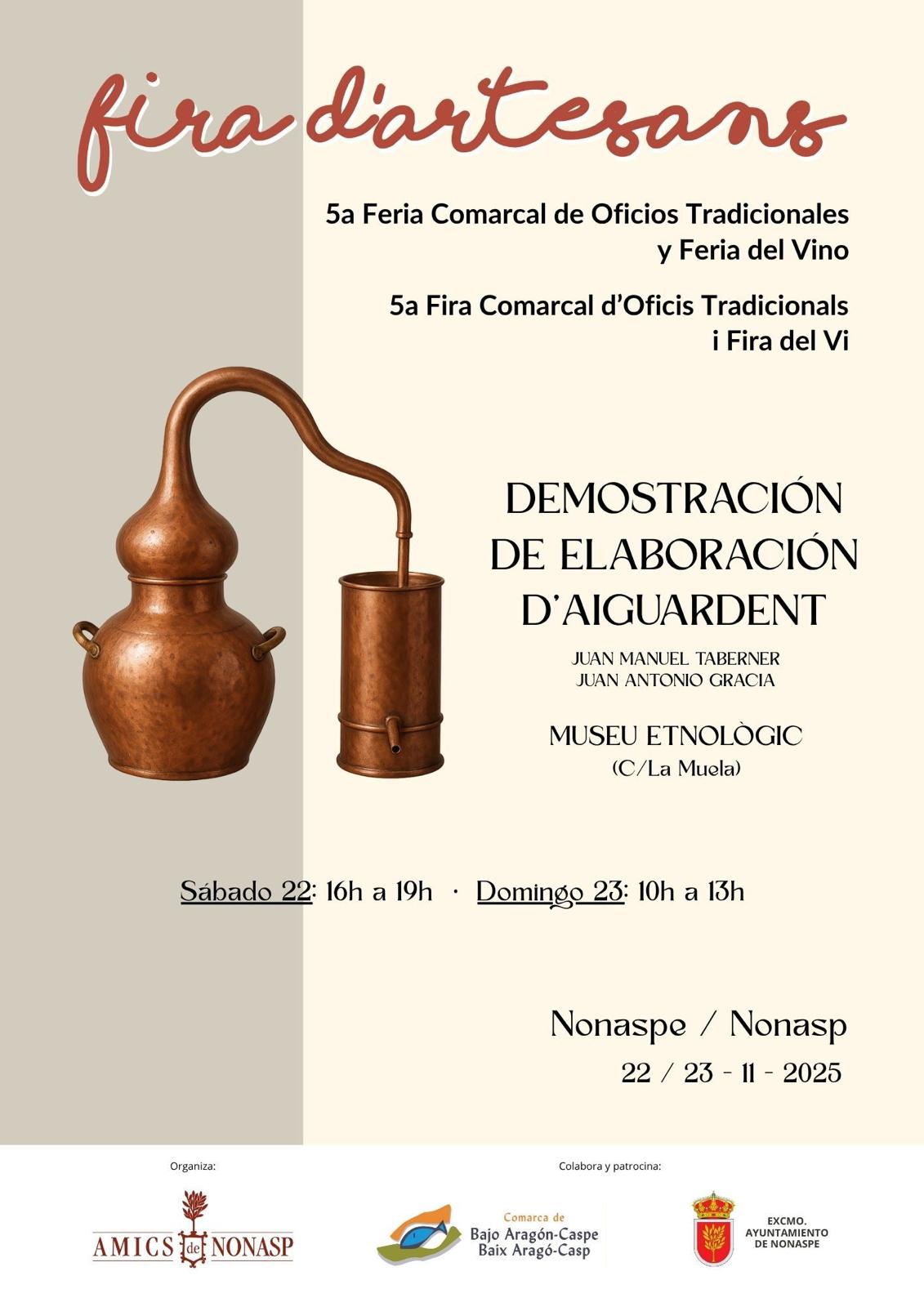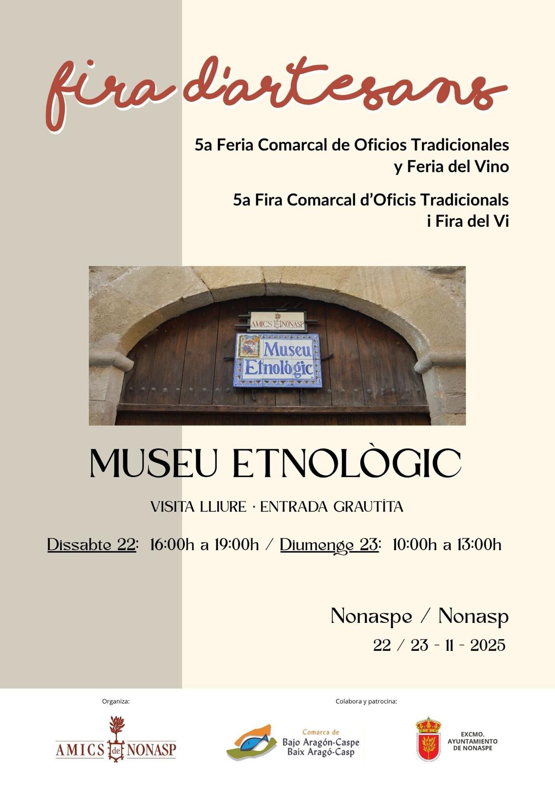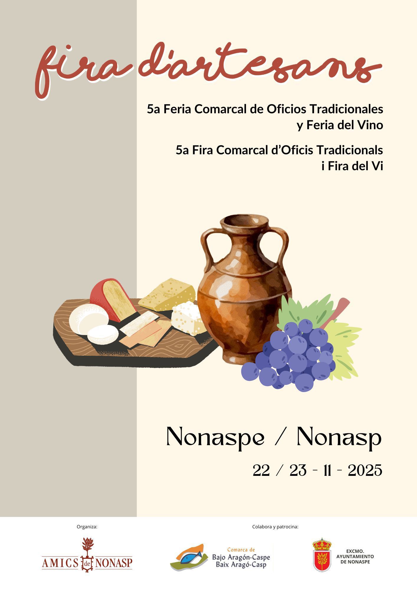 Un año más, y esta es ya la 5ª Edición, se va a desarrollar en la localidad de Nonaspe la Feria Comarcal de Oficios Antiguos o Tradicionales en Nonaspe. Será durante los días 22 y 23 del presente mes de noviembre (sábado y domingo).