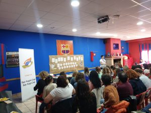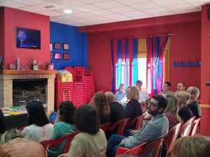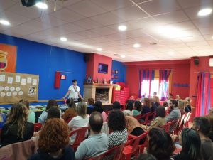 Unas 230 personas llenaron el teatro de Maella, tanto por la mañana, para el acto inaugural y el estreno del corto rodado por el grupo de teatro “Más que palabras” como por la noche, para ver una nueva edición del Late Maella Show. La evolución de dicho grupo de teatro, surgido de estas jornadas, es una de las pruebas evidentes de la repercusión de la actividad en la población. 30 niños y niñas participan en ese grupo, en el que tenemos ya veteranos de 17 años, que continúan en él desde 2017. De hecho, ellos fueron los responsables del brillante pregón de este año, que dejó sorprendidos a todos los asistentes.