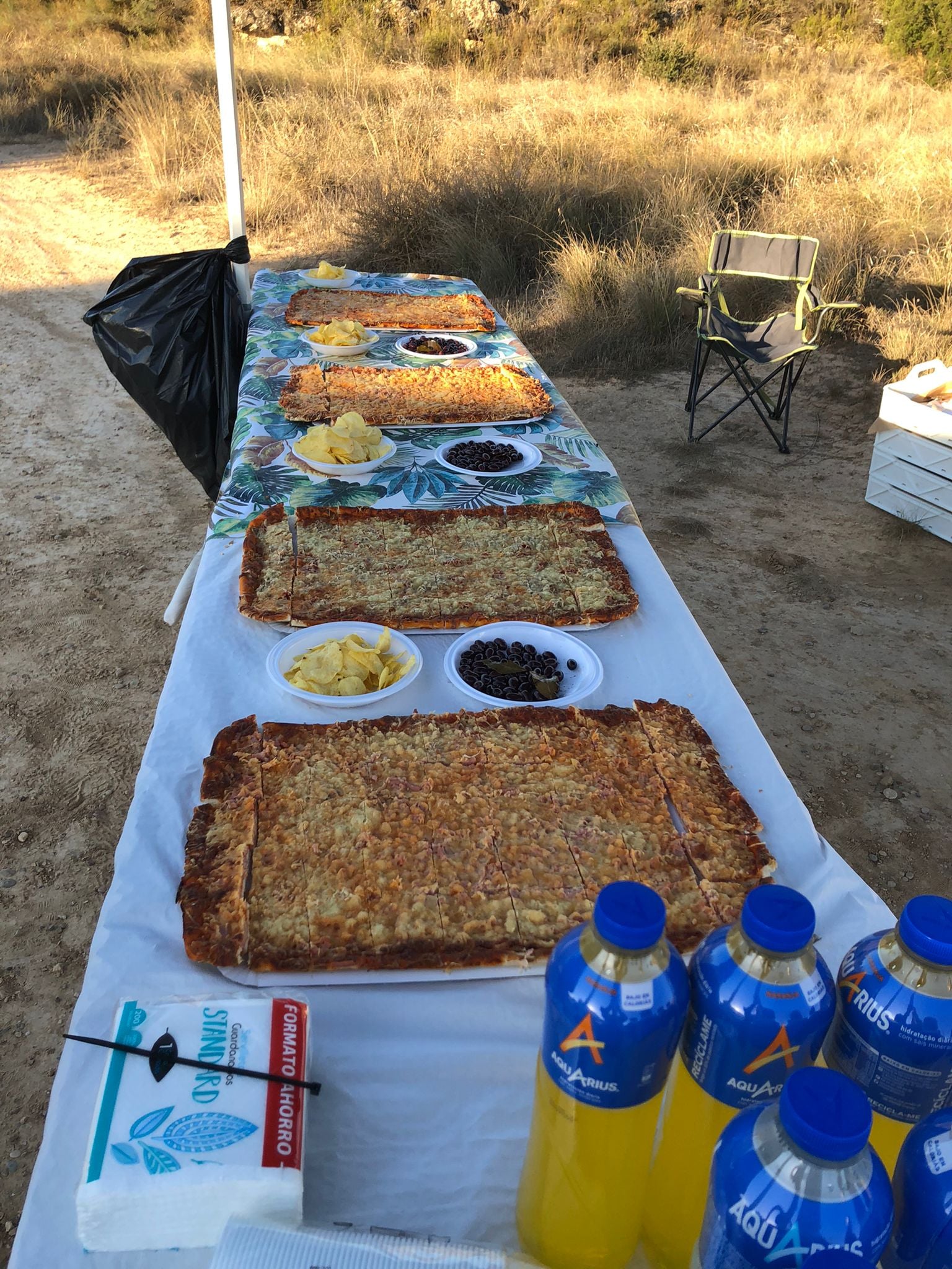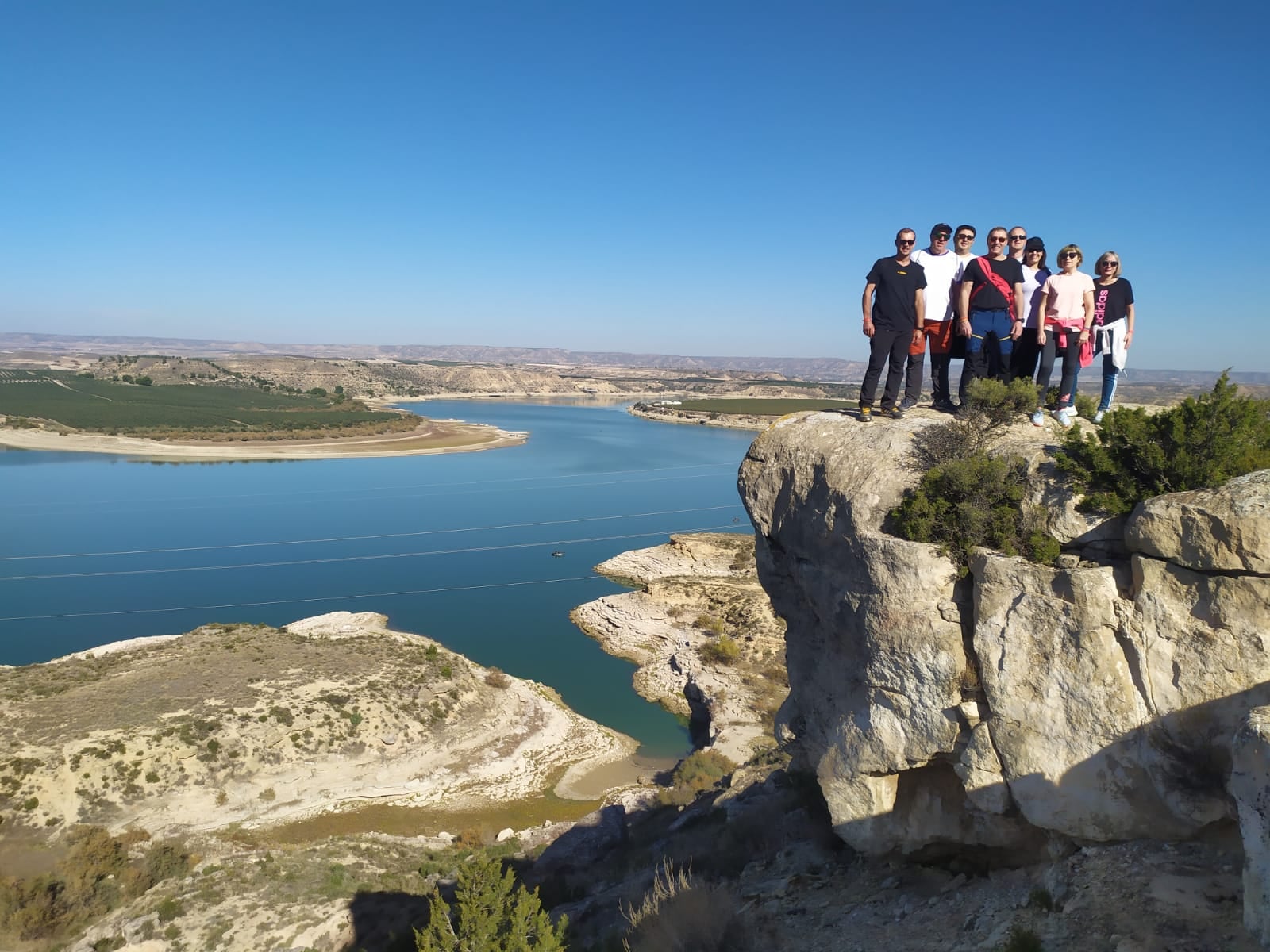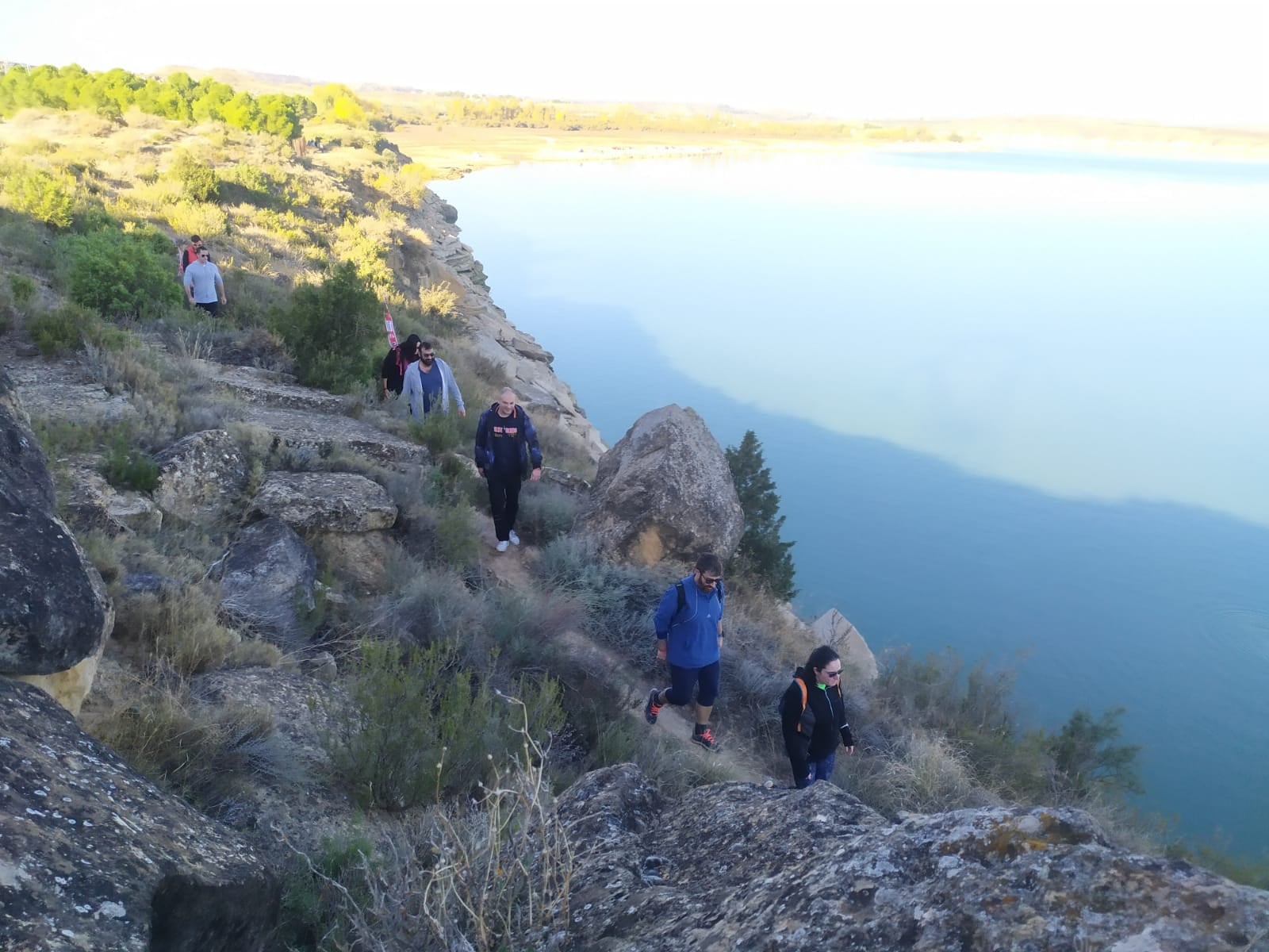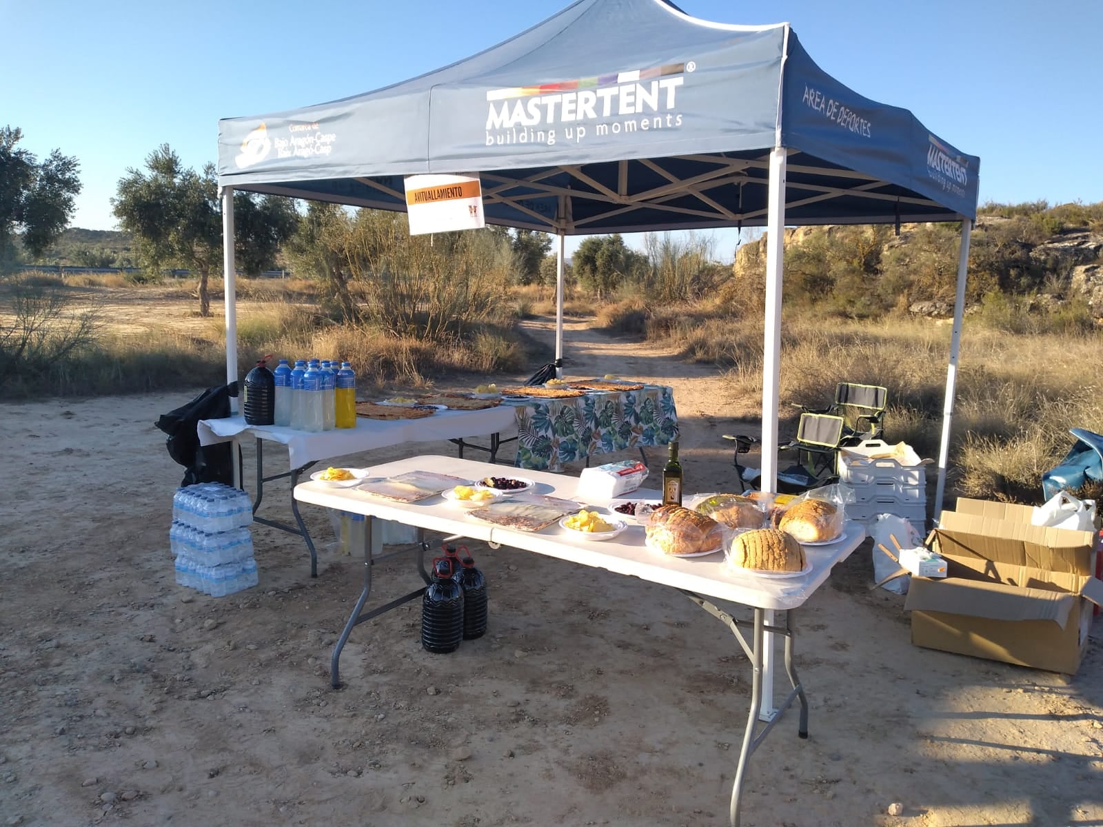 La marcha comenzó a las 8:00h de la mañana, desde la sede comarcal, y de manera escalonada (siguiendo el protocolo COVID), los participantes fueron comenzando su caminata, después de haber degustado un buen chocolate caliente. Ya en ruta, y tras la subida al cabezo de pescadores estaba el primer punto de avituallamiento «Cabo – vaca«, en el kilómetro 5 del recorrido. Después, en las «crestas del Mar de Aragón» las dos rutas tomaban caminos diferentes. Los que optaron por la ruta larga bordearon el rio hacia «tres túneles«, mientras que los de la ruta corta se dirigían al segundo y último avituallamiento, el del «meridiano cero«. En este punto, tanto los voluntarios del Club Zalagarda como los consejeros comarcales, les esperaban para degustar un estupendo almuerzo acompañado de vino. Una vez finalizada la parada, todos los participantes regresaron por las distintas sendas al pueblo, subiendo hasta la Colegiata de Santa María la Mayor de Caspe.