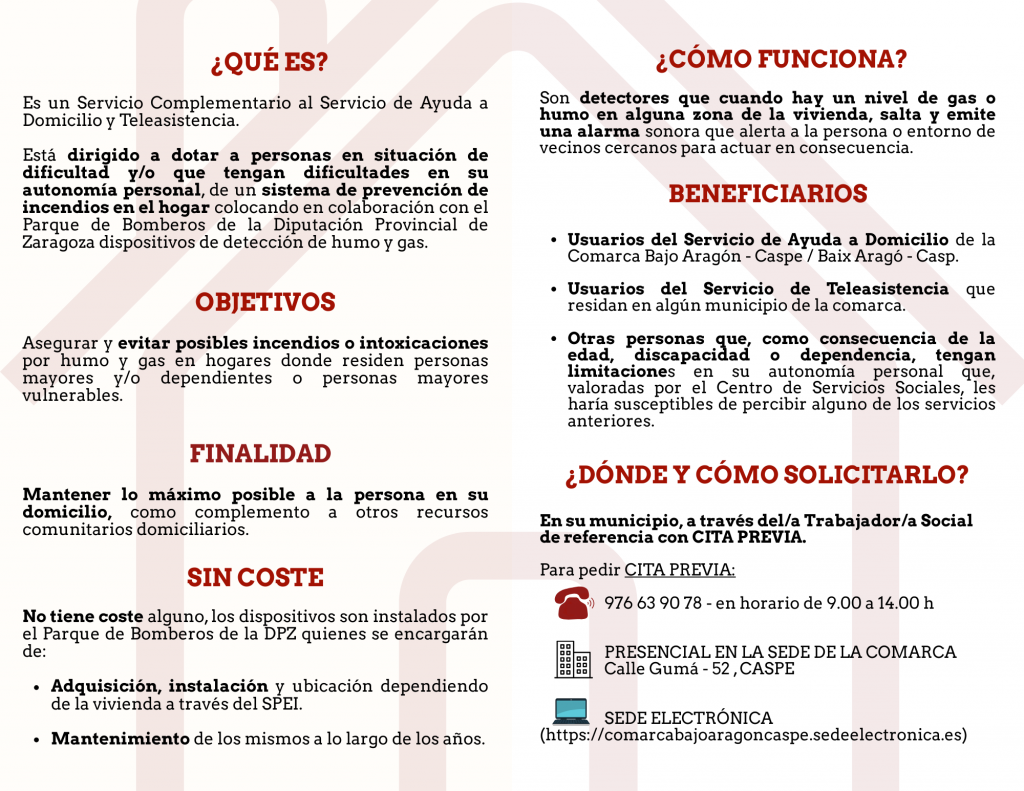 Está dirigido a dotar a personas en situación de dificultad y/o que tengan dificultades en su autonomía personal, de un sistema de prevención de incendios en el hogar y permitir en su caso la detección e intervención más rápida posible.