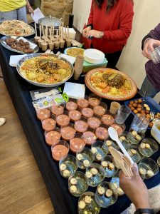 La presentación se llevó a cabo en el Castillo de Caspe a través de un showcooking en el que l@s jóvenes y mujeres que previamente habían cocinado los alimentos, nos presentaron algunos de los platos que aparecen en su recetario del mundo. 🌍📚