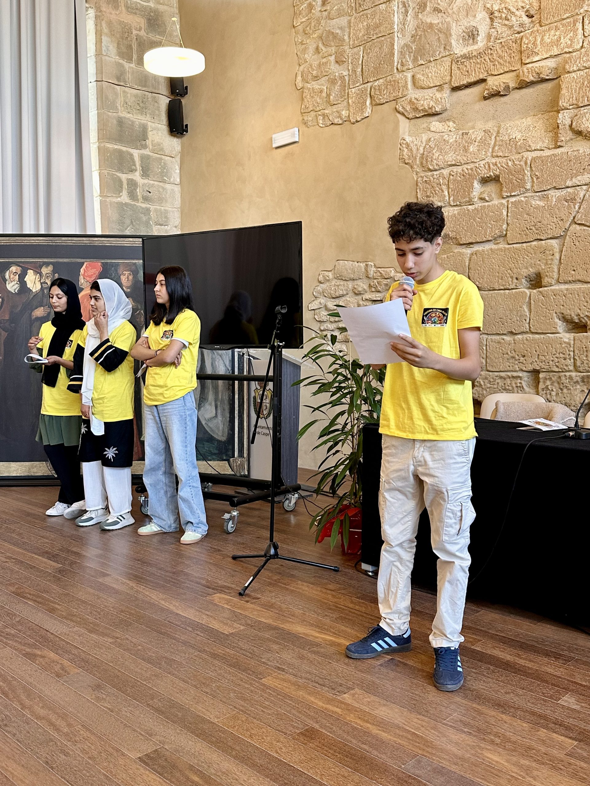 La presentación se llevó a cabo en el Castillo de Caspe a través de un showcooking en el que l@s jóvenes y mujeres que previamente habían cocinado los alimentos, nos presentaron algunos de los platos que aparecen en su recetario del mundo. 🌍📚